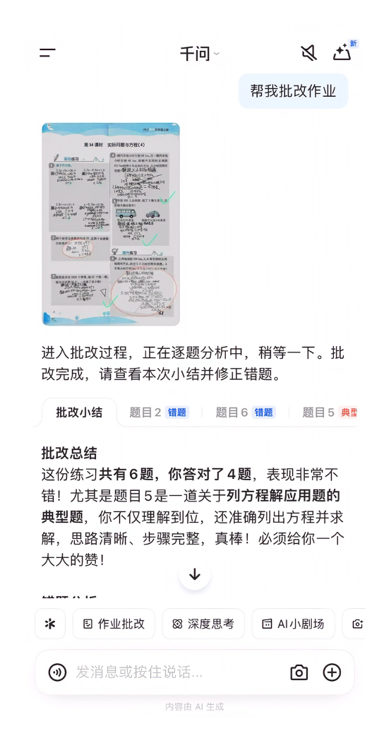 比如在教育领域,学习领域的“办事力”显著增强,用户只需一句话即可找卷子、讲难题、练真题。此次功能升级后,千问不再局限于对话框,而能自主行动、跨应用执行任务、交付结果,成为真正能“办事”的AI助手。在学习场景中,用户只需表达简单需求,比如“找一套上海市初二上学期的数学期末真题”或“帮我搜集一次函数的专项练习”,千问便能精准匹配,并推送可直接使用的PDF或Word文档。